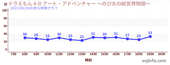 • ドラえもん 4-D アート・アドベンチャー ~のび太の絵世界物語~$B$N(B2025年06月06日の待ち時間