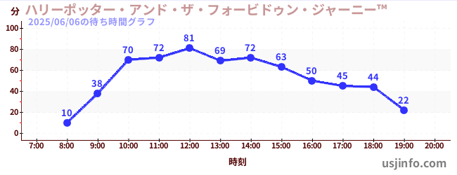 • ハリーポッター・アンド・ザ・フォービドゥン・ジャーニー™$B$N(B2025年06月06日の待ち時間