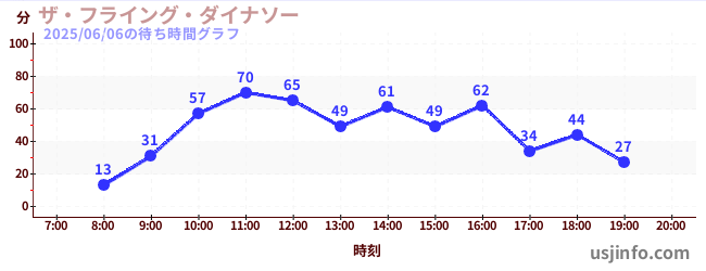 • ザ・フライング・ダイナソー$B$N(B2025年06月06日の待ち時間