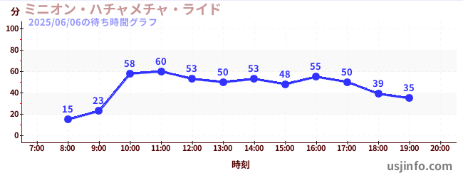 • ミニオン・ハチャメチャ・ライド$B$N(B2025年06月06日の待ち時間