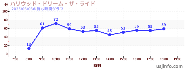 • ハリウッド・ドリーム・ザ・ライド$B$N(B2025年06月06日の待ち時間