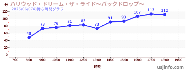 • ハリウッド・ドリーム・ザ・ライド〜バックドロップ〜$B$N(B2025年06月07日の待ち時間