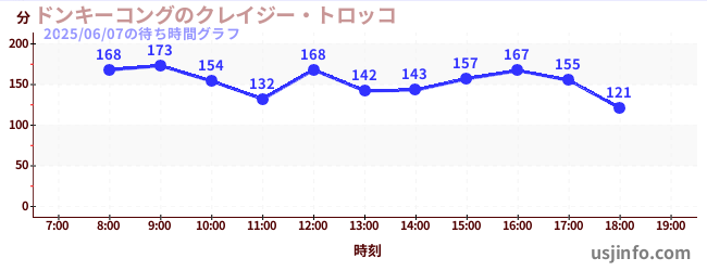 • ドンキーコングのクレイジー・トロッコ$B$N(B2025年06月07日の待ち時間