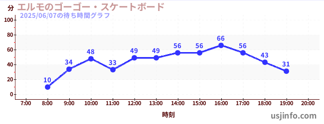• エルモのゴーゴー・スケートボード$B$N(B2025年06月07日の待ち時間