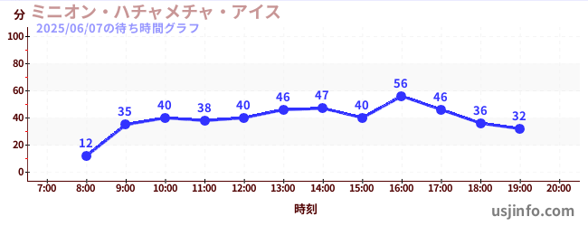 • ミニオン・ハチャメチャ・アイス$B$N(B2025年06月07日の待ち時間