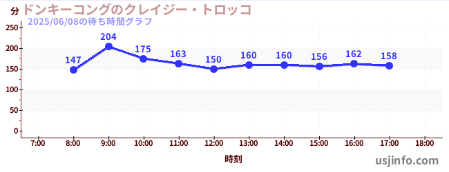 • ドンキーコングのクレイジー・トロッコ$B$N(B2025年06月08日の待ち時間