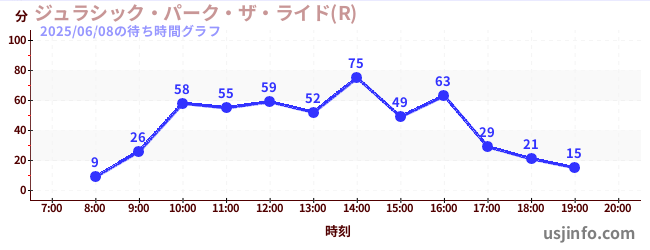 • ハリウッド・ドリーム・ザ・ライド$B$N(B2025年06月08日の待ち時間