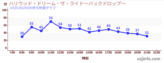 • ハリウッド・ドリーム・ザ・ライド〜バックドロップ〜$B$N(B2025年06月09日の待ち時間
