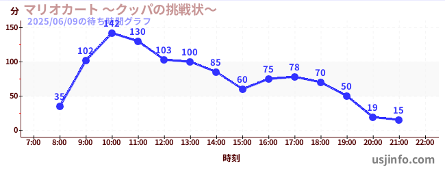 • マリオカート ~クッパの挑戦状~$B$N(B2025年06月09日の待ち時間