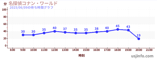 • 名探偵コナン・ワールド$B$N(B2025年06月09日の待ち時間