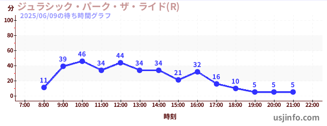 • ジュラシック・パーク・ザ・ライド(R)$B$N(B2025年06月09日の待ち時間