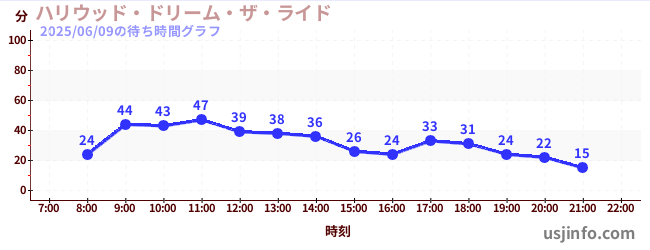 • ハリウッド・ドリーム・ザ・ライド$B$N(B2025年06月09日の待ち時間