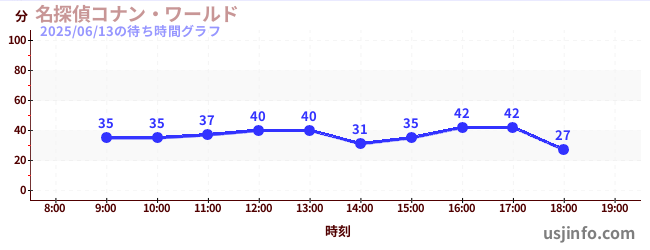 • 名探偵コナン・ワールド$B$N(B2025年06月13日の待ち時間