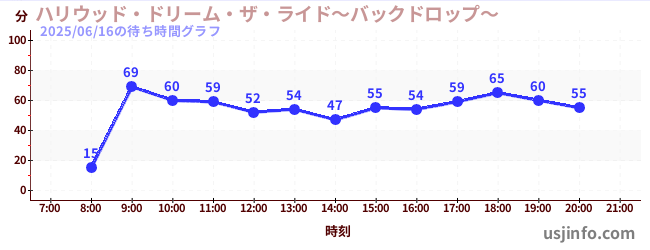 • ハリウッド・ドリーム・ザ・ライド〜バックドロップ〜$B$N(B2025年06月16日の待ち時間