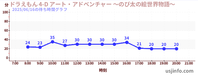 • ドラえもん 4-D アート・アドベンチャー ~のび太の絵世界物語~$B$N(B2025年06月16日の待ち時間