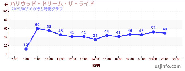 • ハリウッド・ドリーム・ザ・ライド$B$N(B2025年06月16日の待ち時間