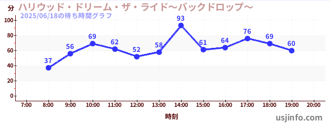 • ハリウッド・ドリーム・ザ・ライド〜バックドロップ〜$B$N(B2025年06月18日の待ち時間