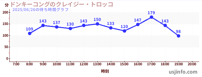 • ドンキーコングのクレイジー・トロッコ$B$N(B2025年06月26日の待ち時間
