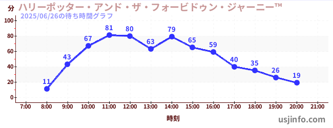 • ハリーポッター・アンド・ザ・フォービドゥン・ジャーニー™$B$N(B2025年06月26日の待ち時間