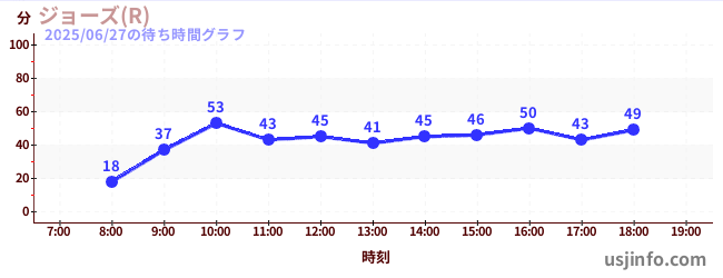 • ジョーズ(R)$B$N(B2025年06月27日の待ち時間