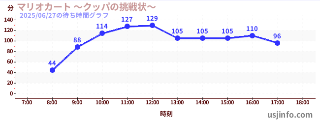 • マリオカート ~クッパの挑戦状~$B$N(B2025年06月27日の待ち時間
