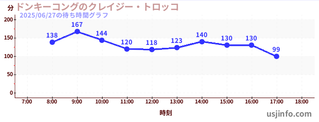• ドンキーコングのクレイジー・トロッコ$B$N(B2025年06月27日の待ち時間