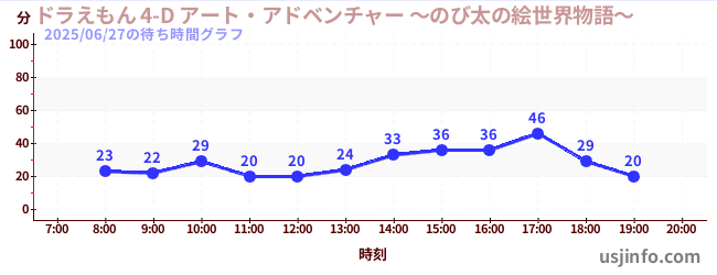 • ドラえもん 4-D アート・アドベンチャー ~のび太の絵世界物語~$B$N(B2025年06月27日の待ち時間