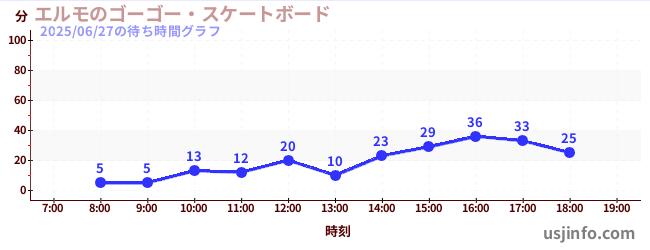• エルモのゴーゴー・スケートボード$B$N(B2025年06月27日の待ち時間