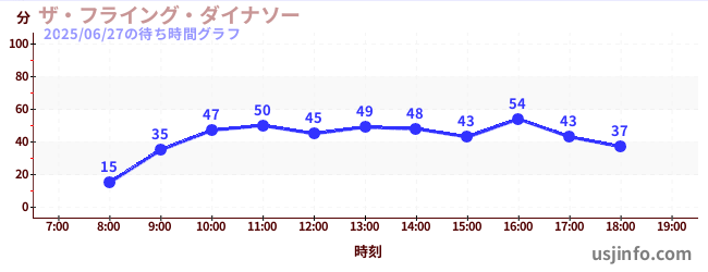 • ザ・フライング・ダイナソー$B$N(B2025年06月27日の待ち時間