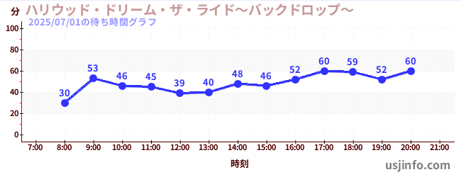 • ハリウッド・ドリーム・ザ・ライド〜バックドロップ〜$B$N(B2025年07月01日の待ち時間