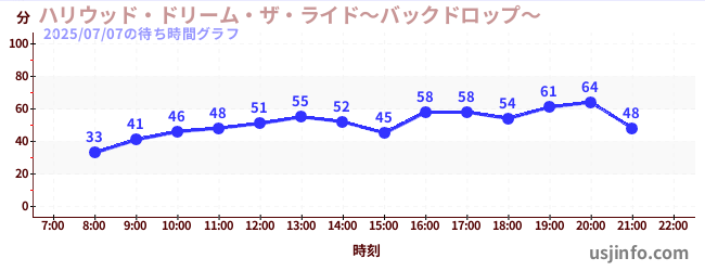 • ハリウッド・ドリーム・ザ・ライド〜バックドロップ〜$B$N(B2025年07月07日の待ち時間
