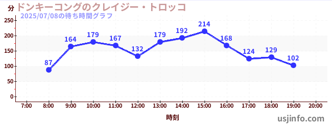 • ドンキーコングのクレイジー・トロッコ$B$N(B2025年07月08日の待ち時間