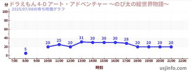 • ドラえもん 4-D アート・アドベンチャー ~のび太の絵世界物語~$B$N(B2025年07月08日の待ち時間