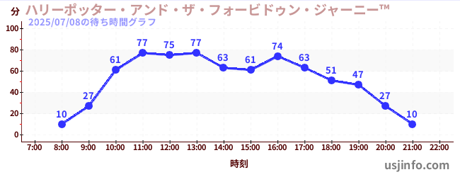 • ハリーポッター・アンド・ザ・フォービドゥン・ジャーニー™$B$N(B2025年07月08日の待ち時間