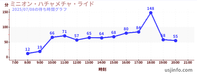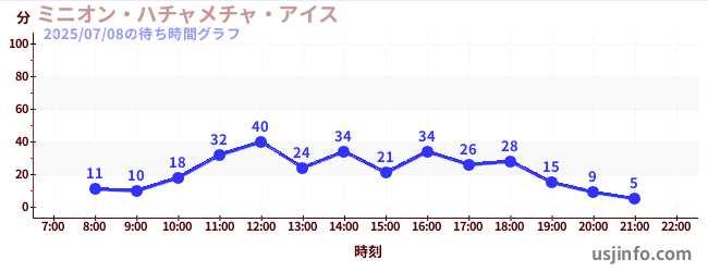 • ミニオン・ハチャメチャ・ライド$B$N(B2025年07月08日の待ち時間