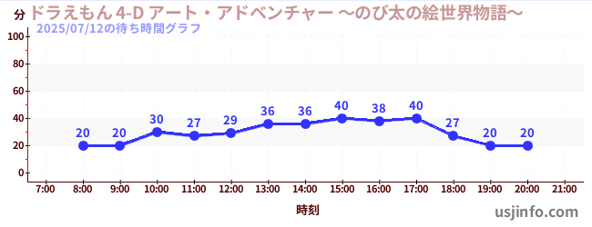 • ドラえもん 4-D アート・アドベンチャー ~のび太の絵世界物語~$B$N(B2025年07月12日の待ち時間