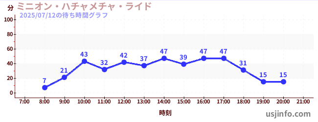• ミニオン・ハチャメチャ・ライド$B$N(B2025年07月12日の待ち時間