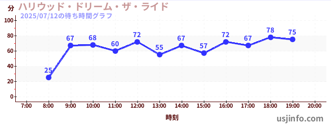 • ハリウッド・ドリーム・ザ・ライド$B$N(B2025年07月12日の待ち時間