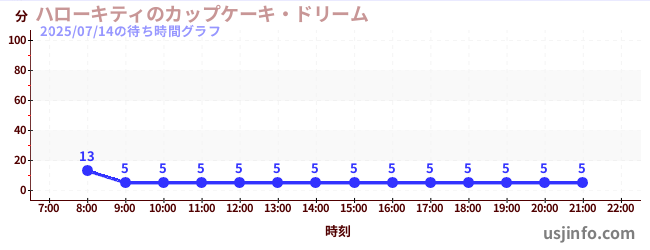 • ハローキティのカップケーキ・ドリーム$B$N(B2025年07月14日の待ち時間