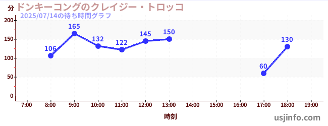 • ドンキーコングのクレイジー・トロッコ$B$N(B2025年07月14日の待ち時間