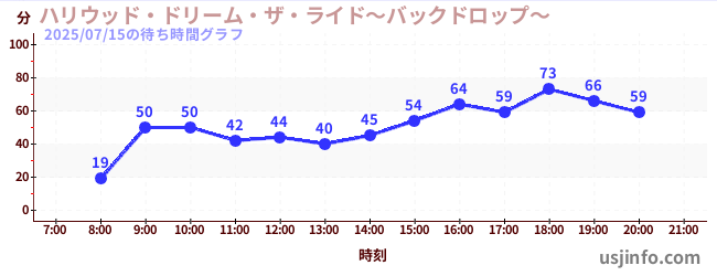 • ハリウッド・ドリーム・ザ・ライド〜バックドロップ〜$B$N(B2025年07月15日の待ち時間