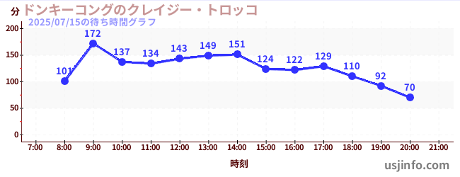 • ドンキーコングのクレイジー・トロッコ$B$N(B2025年07月15日の待ち時間