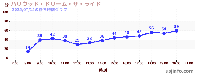 • ハリウッド・ドリーム・ザ・ライド$B$N(B2025年07月15日の待ち時間