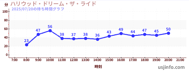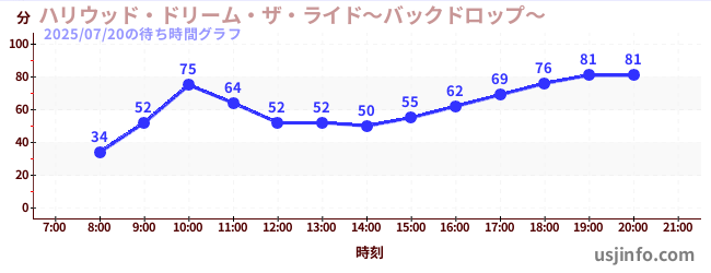 • ハリウッド・ドリーム・ザ・ライド〜バックドロップ〜$B$N(B2025年07月20日の待ち時間
