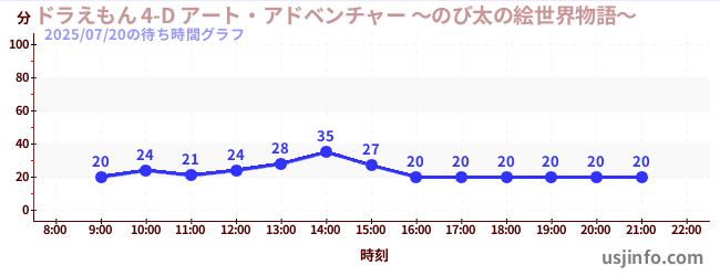 • ドラえもん 4-D アート・アドベンチャー ~のび太の絵世界物語~$B$N(B2025年07月20日の待ち時間