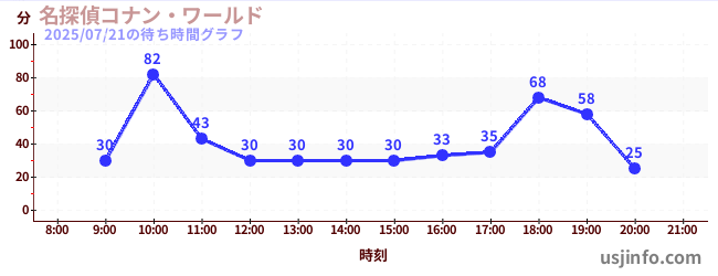 • 名探偵コナン・ワールド$B$N(B2025年07月21日の待ち時間