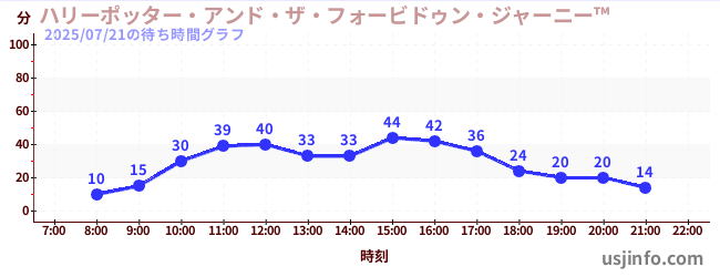 • ハリーポッター・アンド・ザ・フォービドゥン・ジャーニー™$B$N(B2025年07月21日の待ち時間