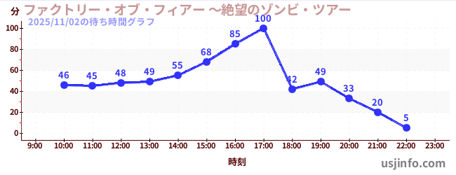 • ファクトリー・オブ・フィアー ~絶望のゾンビ・ツアー$B$N(B2025年11月02日の待ち時間