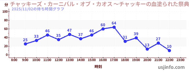 • チャッキーズ・カーニバル・オブ・カオス ~チャッキーの血塗られた祭典~$B$N(B2025年11月02日の待ち時間