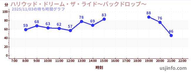 • ハリウッド・ドリーム・ザ・ライド〜バックドロップ〜$B$N(B2025年11月03日の待ち時間